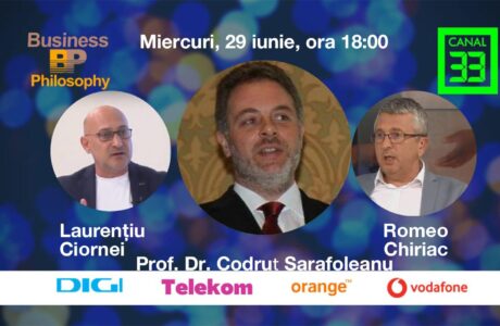 Emisiunea Business Philosophy de la Canal 33, care va avea loc miercuri, 30 iunie, de la ora 18:00, îl va avea ca invitat special pe Prof. Dr. Caius-Codruţ Sarafoleanu – Doctor în Științe Medicale, șeful Clinicii O.R.L. Spitalul Clinic „Sfânta Maria”din București, șeful Disciplinei O.R.L. Facultatea de Medicină Dentară, BucureștiAfla mai multe!